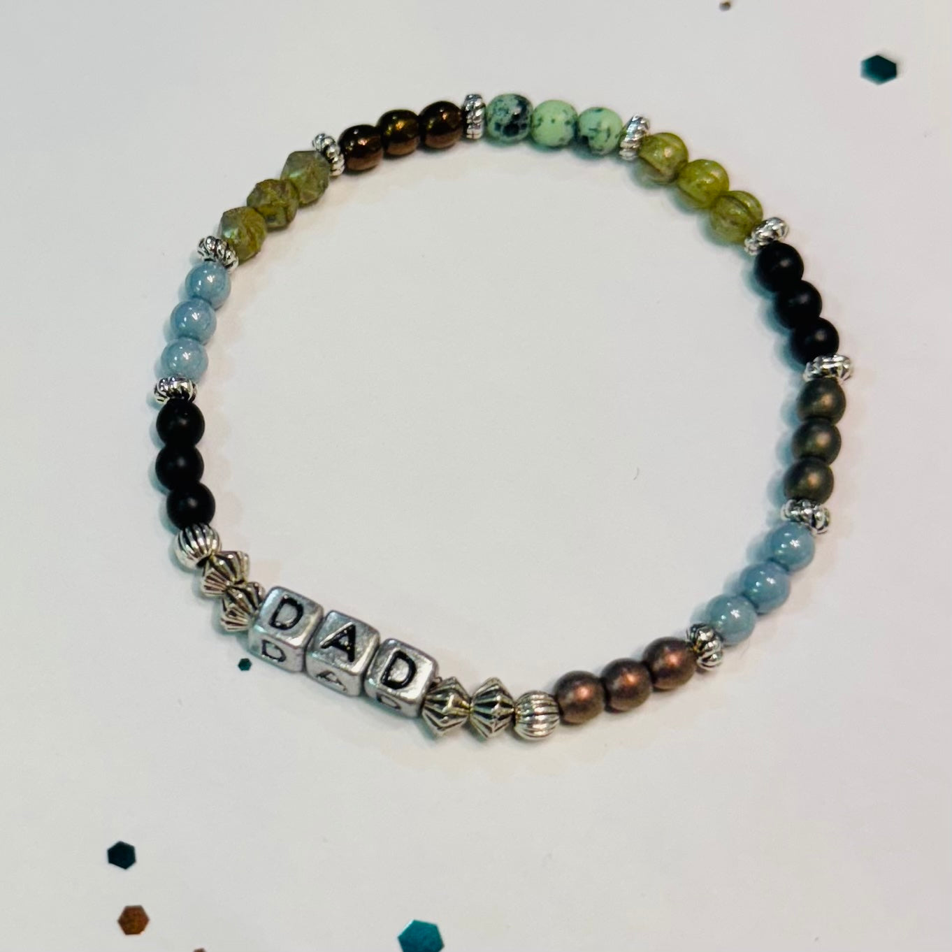 Would you like to see this message on a bracelet but with a different design or color scheme? No problem, we love custom requests! Just choose the 'custom' option and write a few things that you'd like to see in your design.
