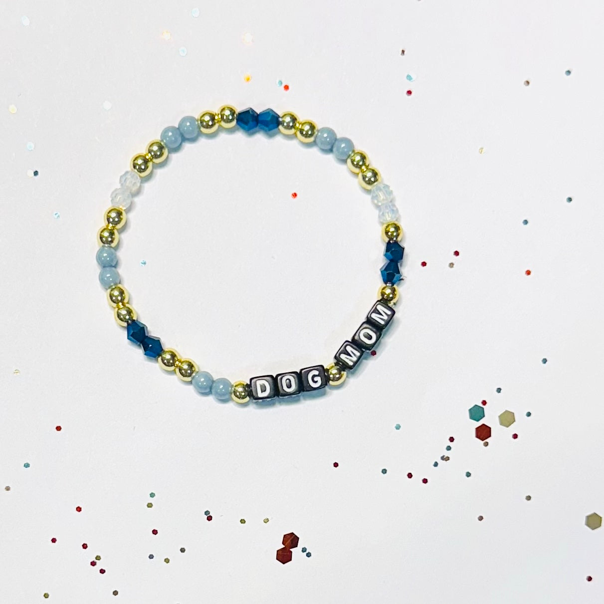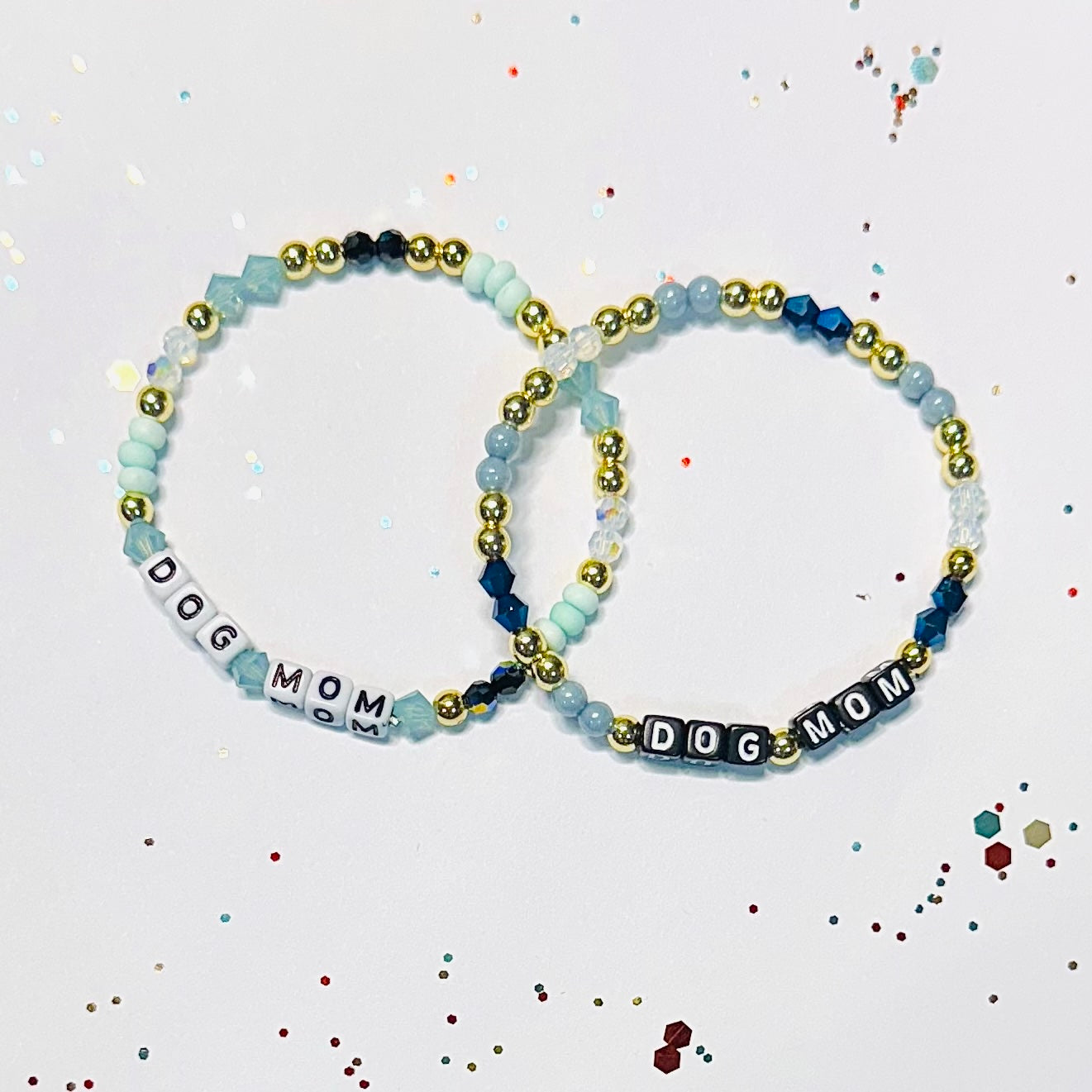 We try to use the best quality beads--we include a mixture of Swarovski crystals, fire-polished Czech beads, hematite spacer beads, and more. Bracelets are made with 0.8mm (single strand) or 0.5mm (double strand) polyurethane stretch cord.
