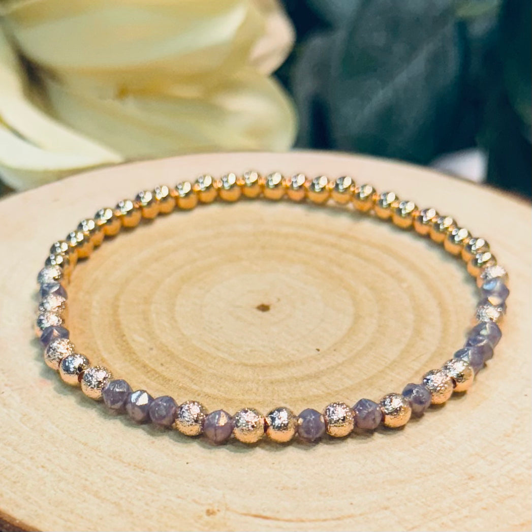 We try to use the best quality beads--we include a mixture of Swarovski crystals, fire-polished Czech beads, hematite spacer beads, and more. Bracelets are made with 0.8mm (single strand) or 0.5mm (double strand) polyurethane stretch cord.