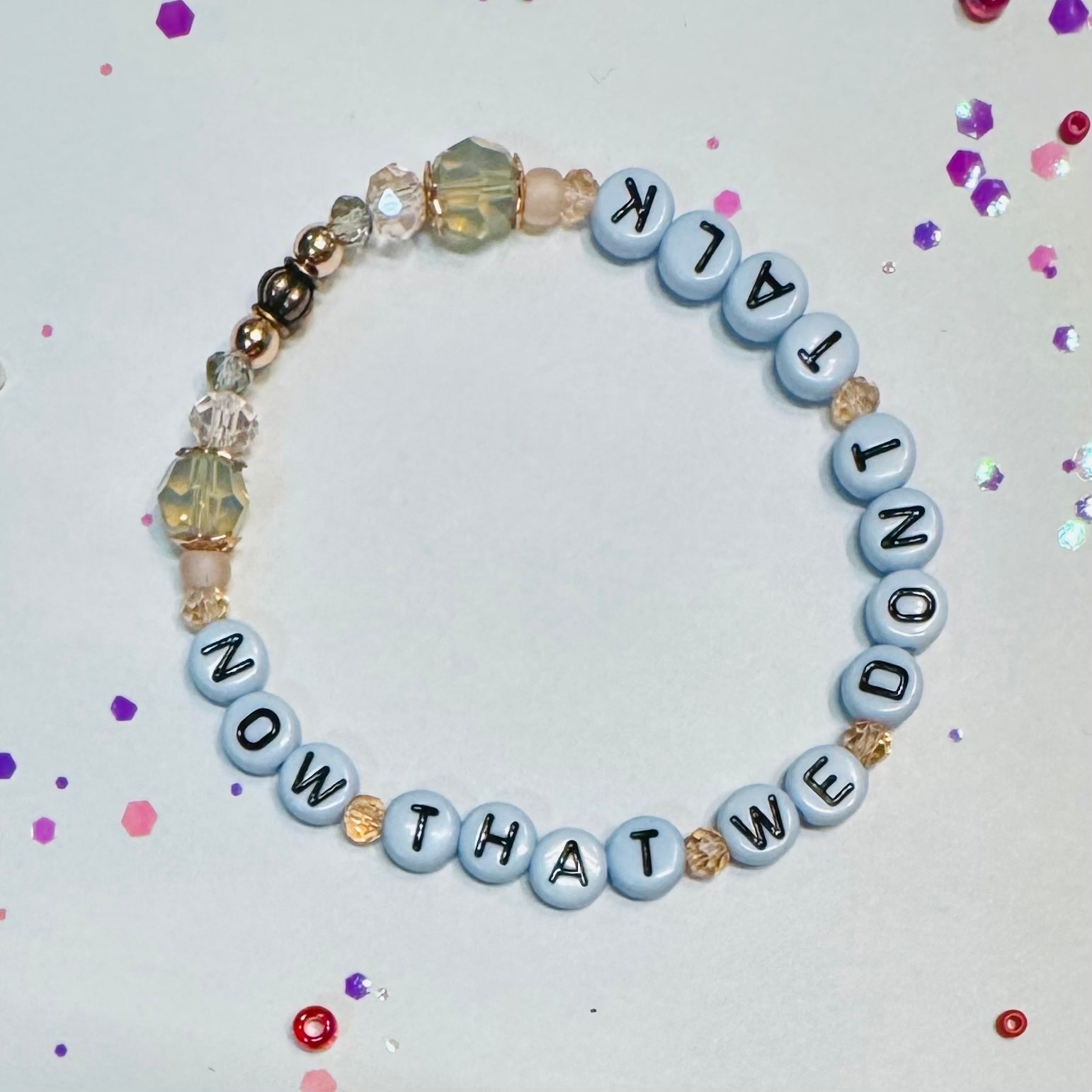 Would you like to see this message on a bracelet but with a different design or color scheme? No problem, we love custom requests! Just choose the 'custom' option and write a few things that you'd like to see in your design.