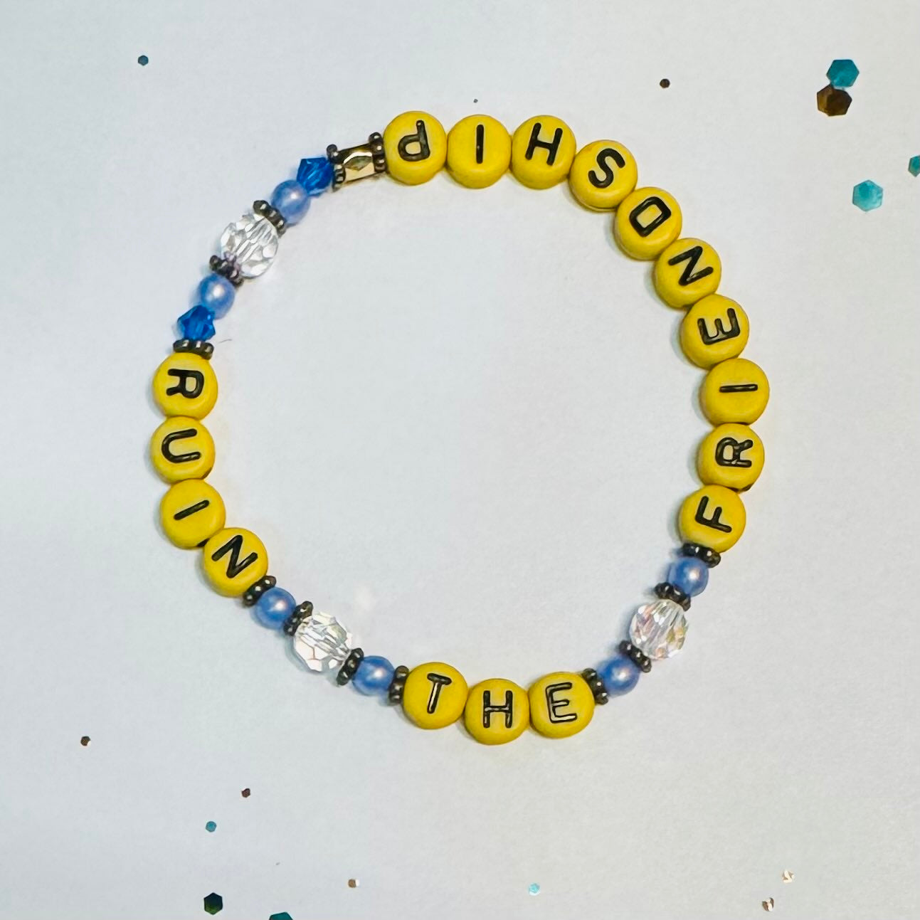 Celebrating the new album: The Life of a Showgirl has premiered! These bracelets are giving full spotlight energy — bold words, bright beads, and a little bit of showgirl sparkle.