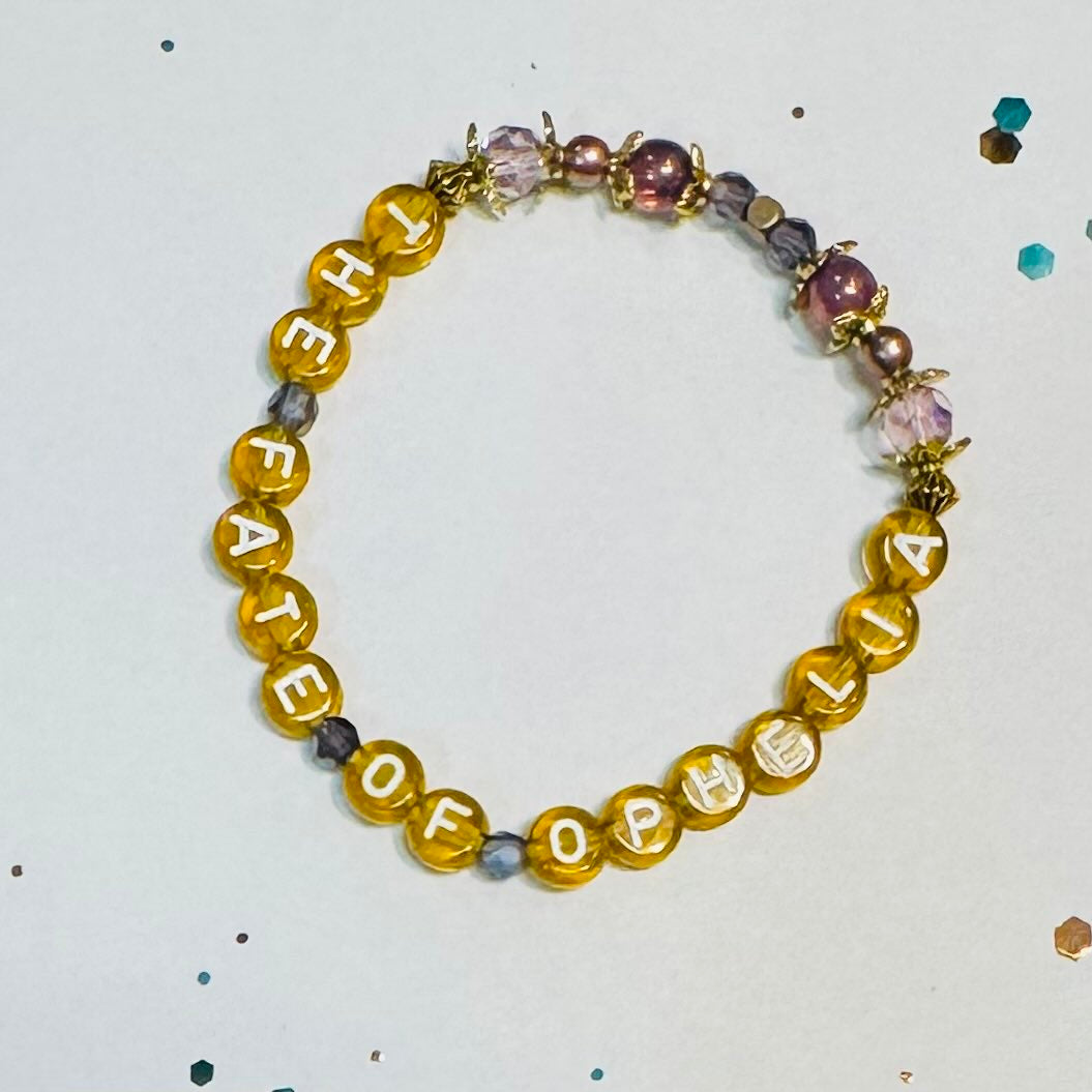 Celebrating the new album: The Life of a Showgirl has premiered! These bracelets are giving full spotlight energy — bold words, bright beads, and a little bit of showgirl sparkle.
