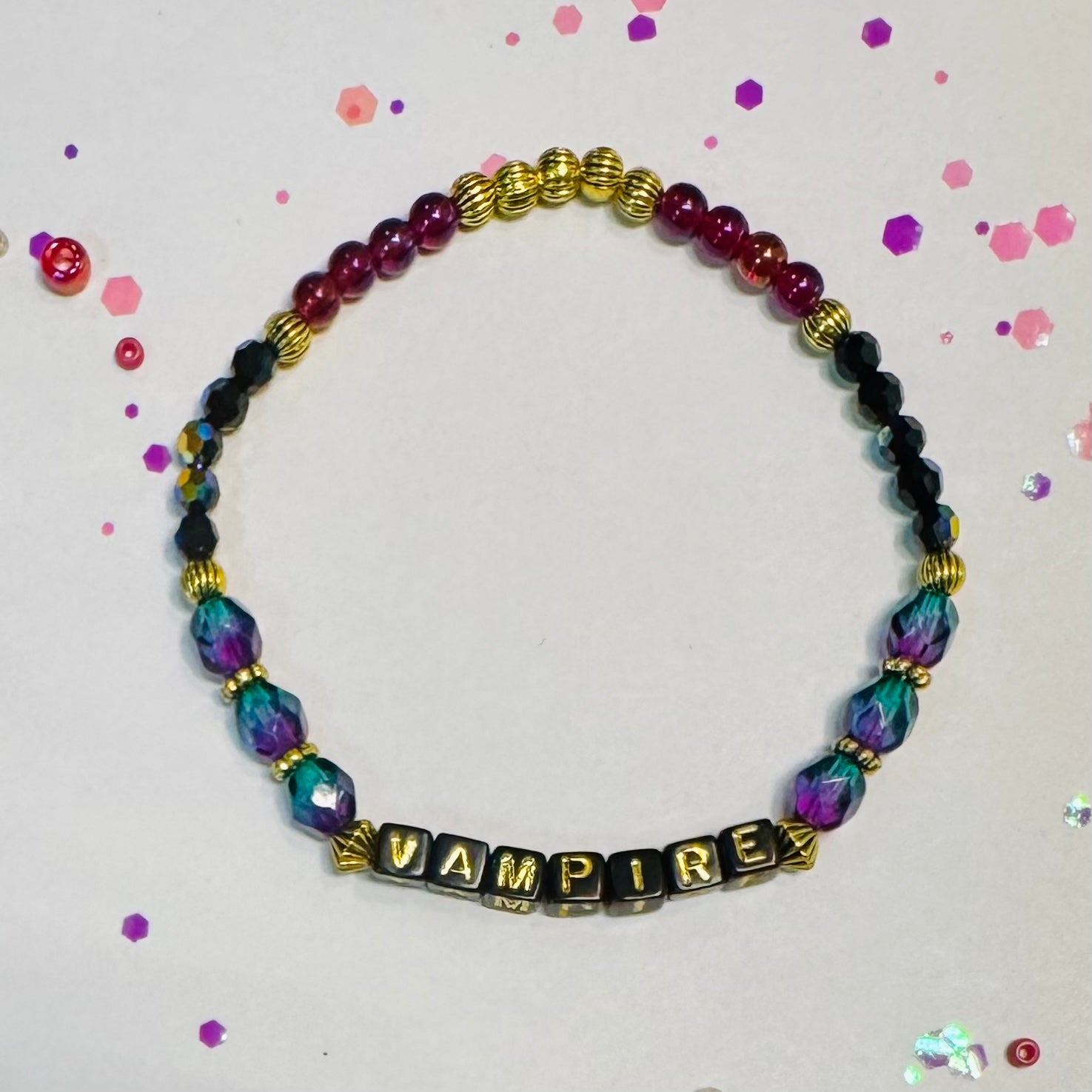 Would you like to see this message on a bracelet but with a different design or color scheme? No problem, we love custom requests! Just choose the 'custom' option and write a few things that you'd like to see in your design.