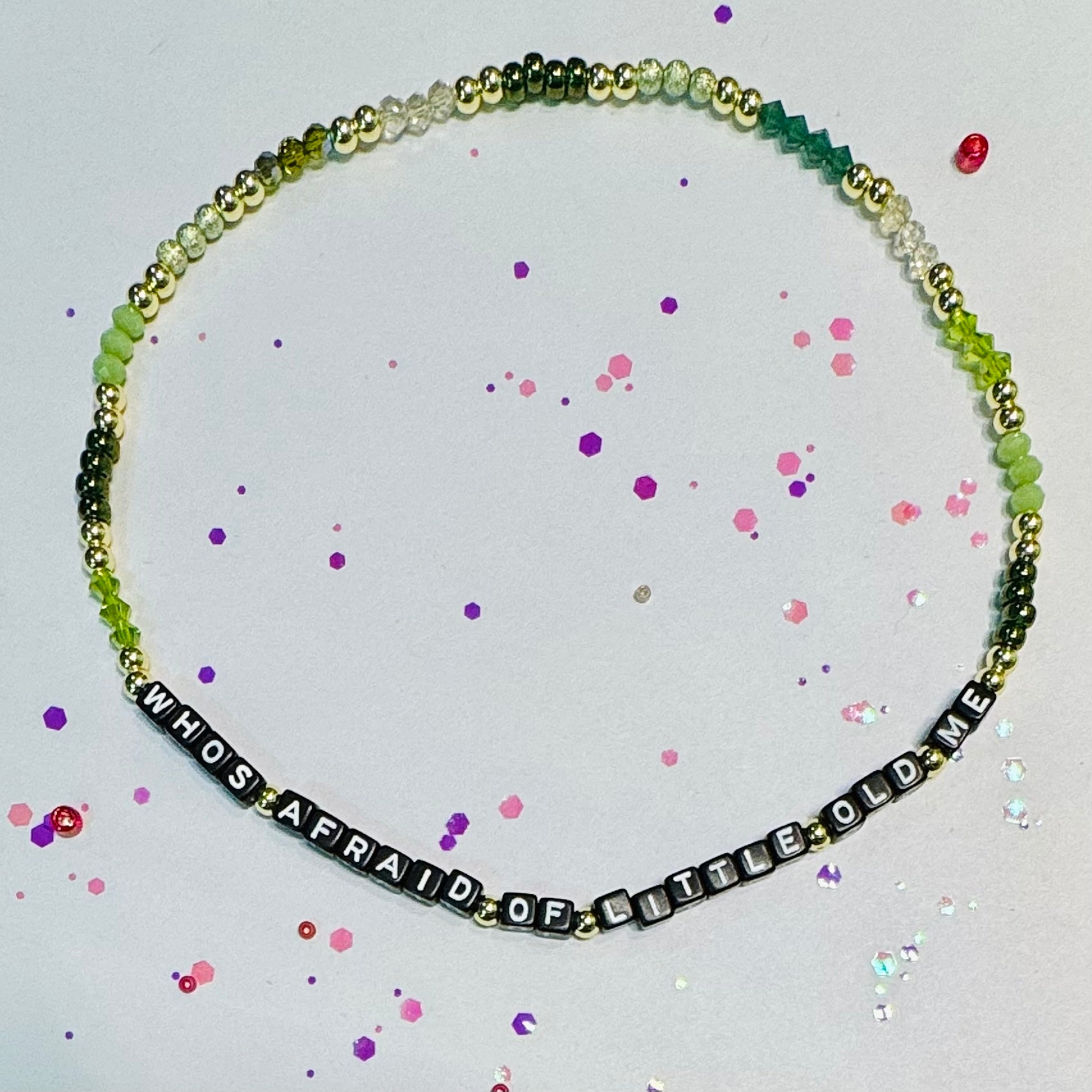 Would you like to see this message on a bracelet but with a different design or color scheme? No problem, we love custom requests! Just choose the 'custom' option and write a few things that you'd like to see in your design.