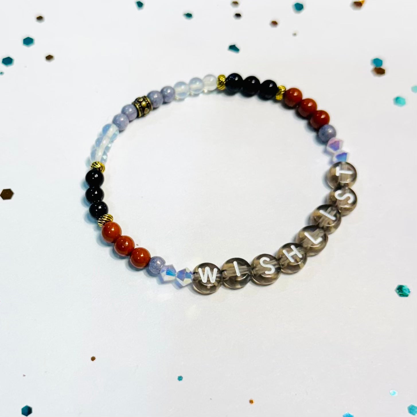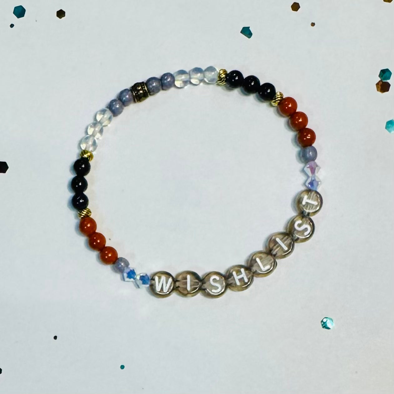 We try to use the best quality beads--we include a mixture of Swarovski crystals, fire-polished Czech beads, hematite spacer beads, and more. Bracelets are made with 0.8mm (single strand) or 0.5mm (double strand) polyurethane stretch cord.